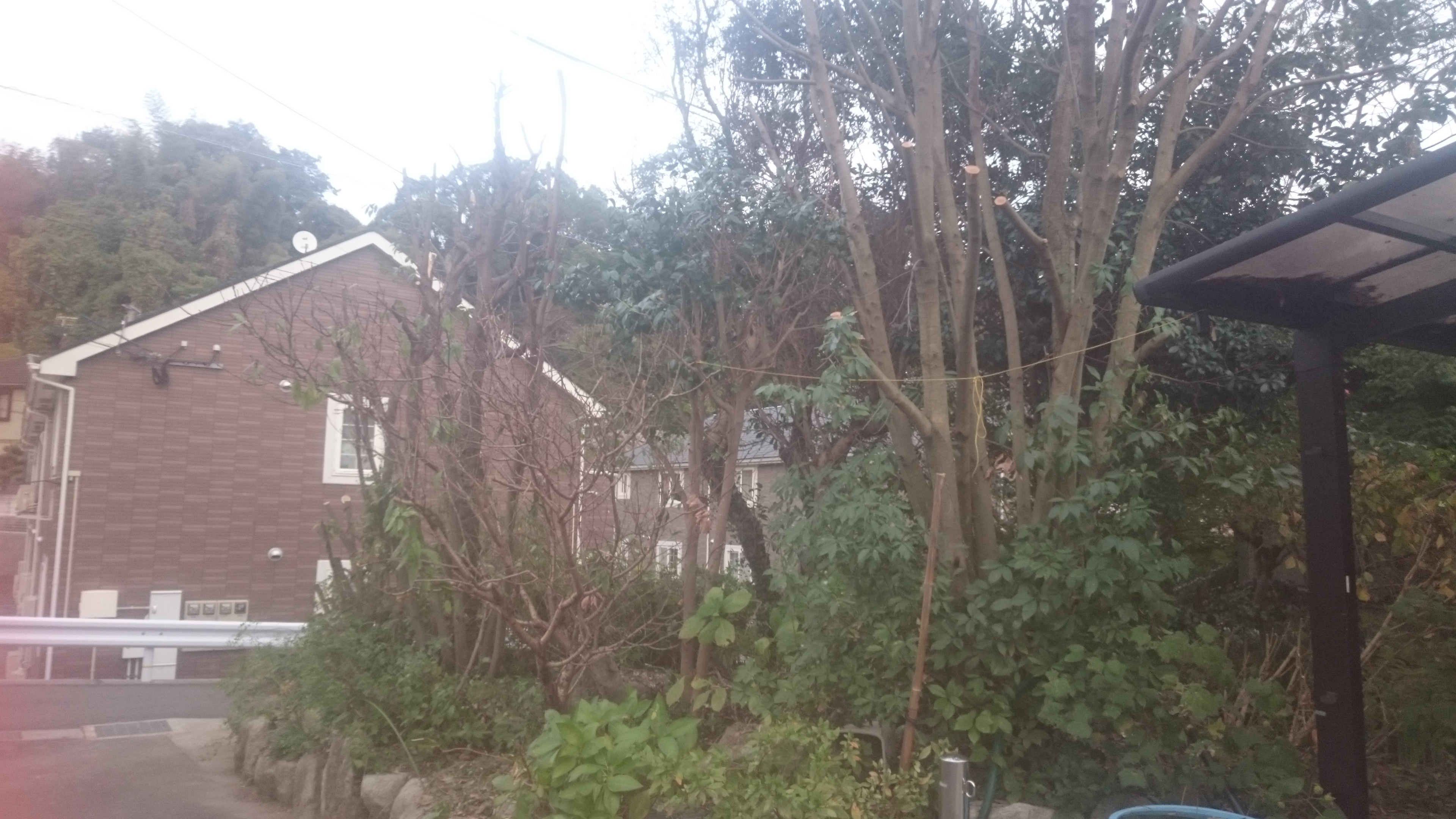 長年手入れをしていなかった木々を剪定し、外から見てもすっきりと綺麗にリニューアルしました